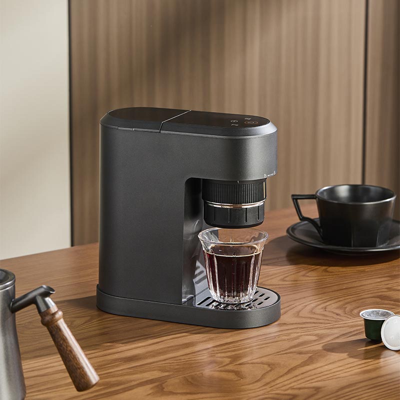 Ekspres do kawy HB-507 w stylu włoskim ma opływową konstrukcję i duży zbiornik na wodę o pojemności 280 ml. Konstrukcja SS 304, mocny element grzejny może osiągnąć 1300 W. szybkie gotowanie kawy, nawet w 30 sekund. Funkcja zimnego parzenia, kawa w kapsułkach, kawa mielona są odpowiednie dla tego produktu, zaspokajają różne potrzeby. Ciśnienie uderzeniowe 15 barów, ekstrahuje idealny olej kawowy. Termostat elektryczny, kontroluje temperaturę z dużą dokładnością.